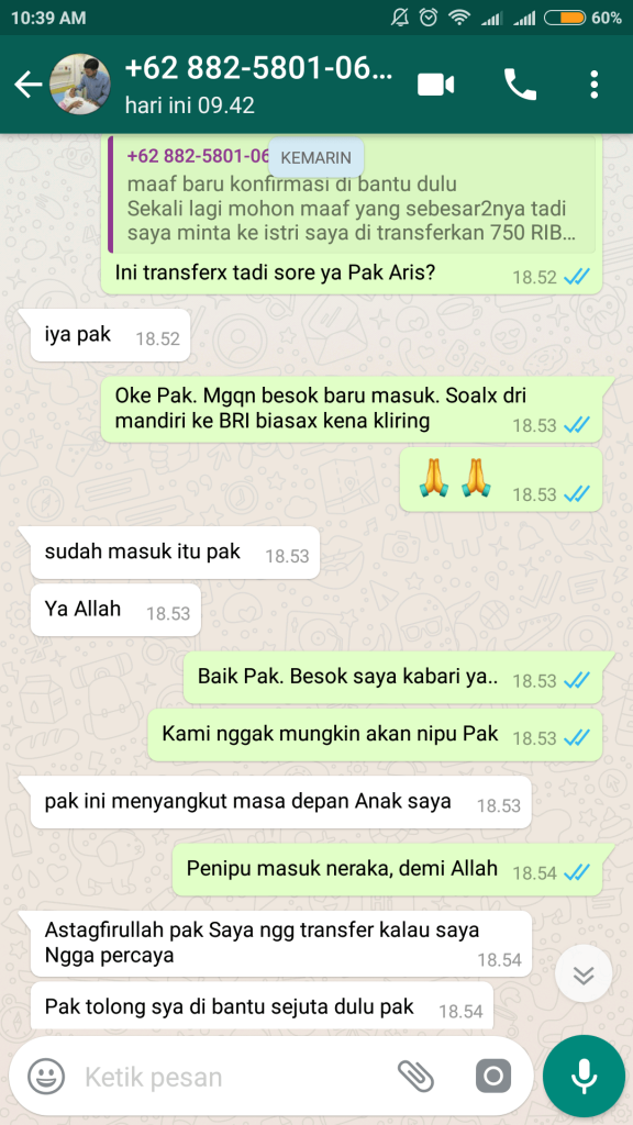 Tapi di bagian tengah, ketika dia mulai mendesak, saya langsung mencium gelagat yang tidak baik. Maklum, sudah beberapa kali hampir ditipu oleh penipu via rekening begini.