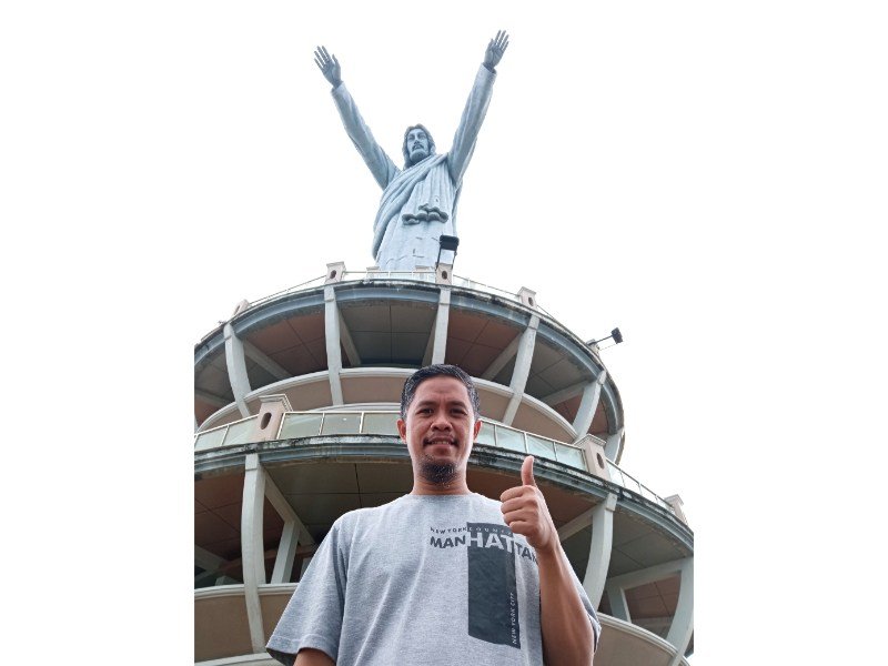 Perjalanan ke arah patung ini seperti mendaki gunung di tengah kota. Perjalanannya cukup menantang, meski tak seberat medan ke Buntu Sopai. Beberapa titik pendakian tinggi, tapi jalanannya aspal mulus. Selain itu di kiri kanan ada pembatas jalan. Bukitnya pun agak jauh dari jurang.
